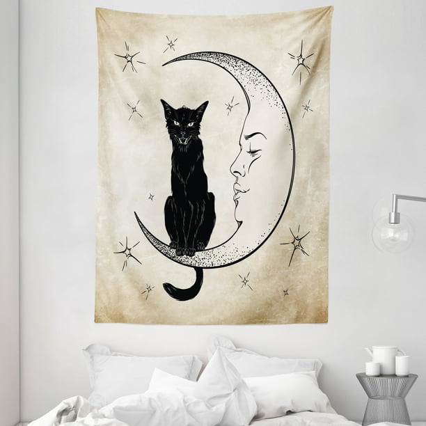 Moon Tapestry Black Cat Sitting On White Crescent Moon Contrasting Facial Expressions Feline Wall Hanging For Bedroom Living Room Dorm Decor 60w X 80l Inches Sand Brown Black By Ambesonne Walmart Com